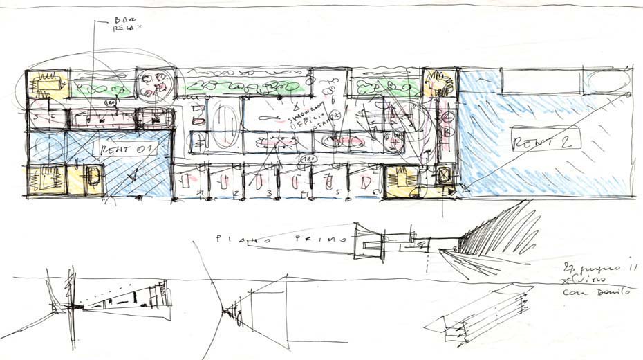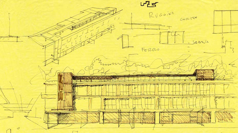 Il progetto ha cercato la migliore definizione spaziale, formale e distributiva per una struttura aziendale complessa per modalità operative diversificate nel tempo (show, casting, office, design).