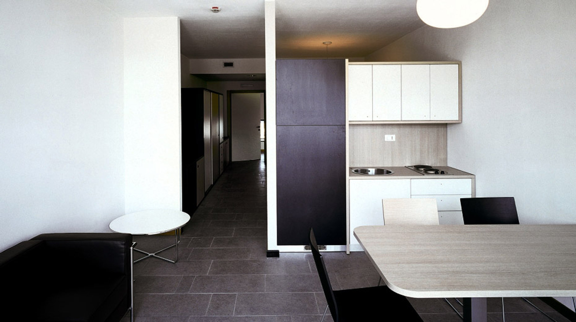 Parafrasando infatti il modello dell'Unité d'Habitation,e (perché no?) della Cascina Lombarda, il nuovo edificio contempla l'accostamento, la connessione e appunto l'integrazione paradigmatica di funzioni sociali complementari, allegoria di un esempio abitativo alternativo alla convenzione diffusa.