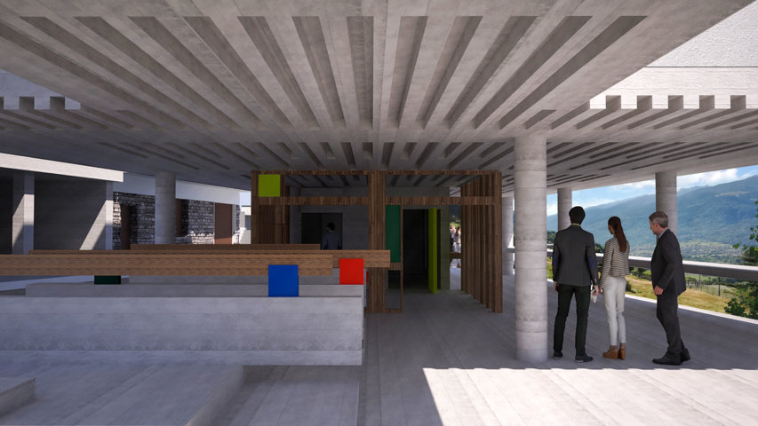 riconoscibilità alla scala della prossimità e a quella del paesaggio. L’inserimento paesaggistico trova ragione non tanto in un’idea di mimetismo stilistico quanto di accoglienza critica della forma, della misura e della