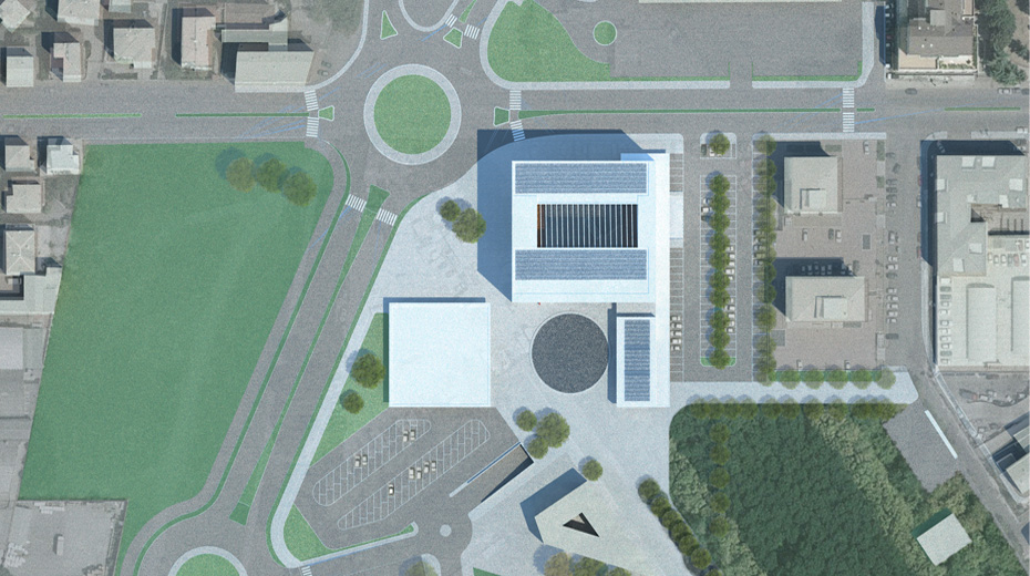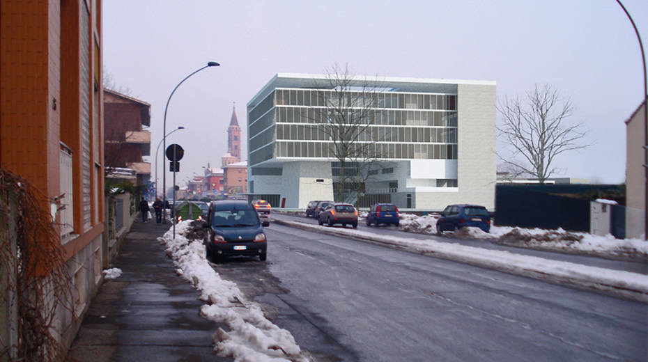 L’intervento riguarda un lotto ai bordi della città storica, compreso tra l’importante asse viario di via della Conciliazione a nord e lo sviluppo urbano con il nuovo grande parco a sud. Il progetto per la nuova delegazione comunale si fonda sul principio della permeabilità tra esterno ed interno, dove la piazza coperta saraà percepita come elemento di continuità urbana.