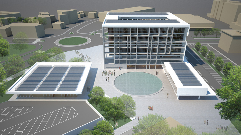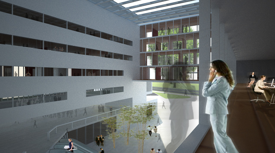 Il Comune di Piacenza organizza una competizione ad inviti per la costuzione di un nuovo edificio per uffici municipali. Progetto dell'architettura di Arco Associati, Ingegneria e Space planning di Progetto CMR.