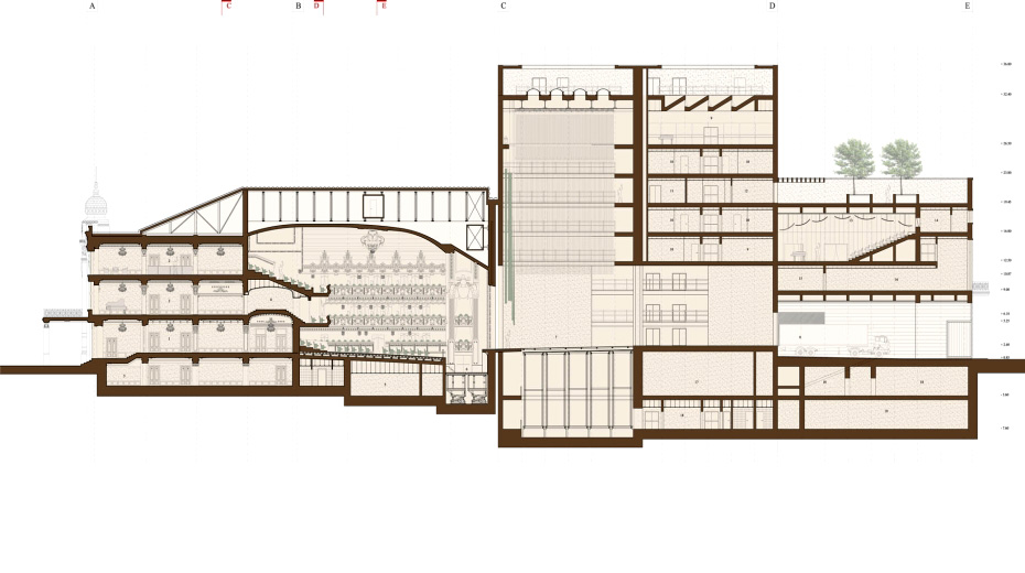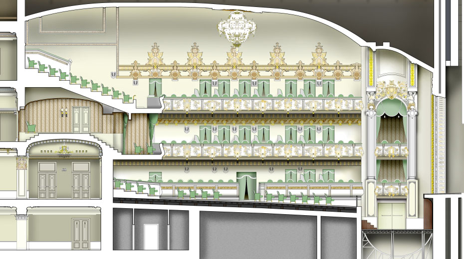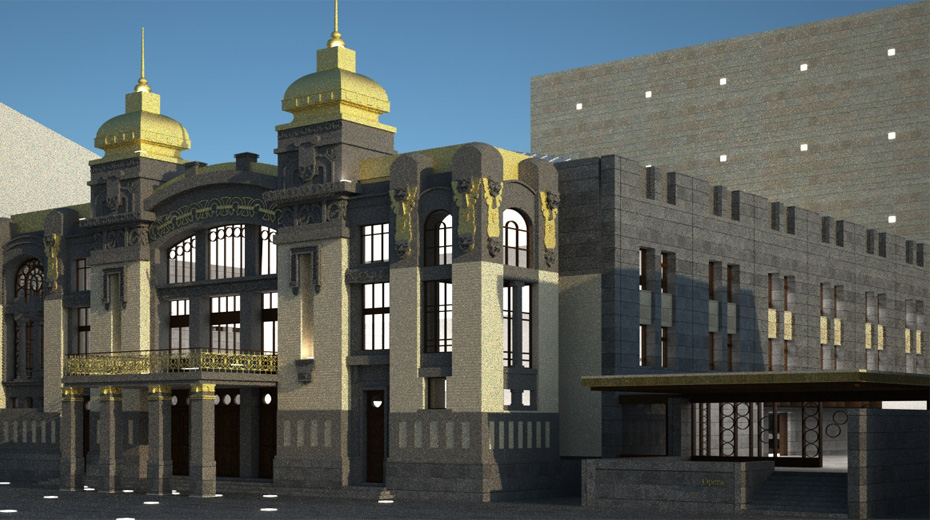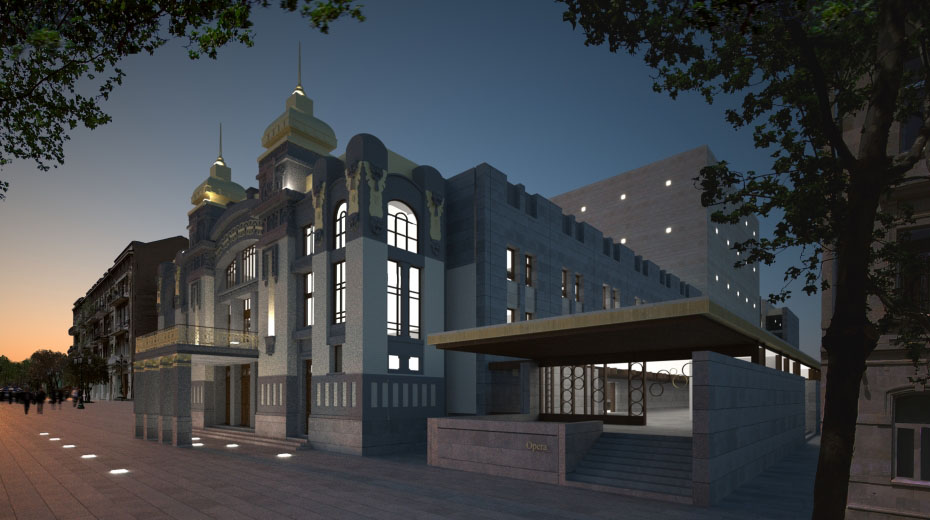 Per me l'occasione per la conoscenza di una cultura (non solo dell'abitare) antica e importante, per l'approfondimento del tema tipologico teatrale, per riflettare sul tema sfondo - figura alla scala urbana e alla scala dell'edificio. I lavori proposti nel progetto di ristrutturazione del Teatro dell'Opera e Balletto di Baku sono stati divisi in: puro restauro, ristrutturazione e costruzione ex novo. Nelle parti da restaurare sono state rispettate la distribuzione e le relative attività, utilizzando i materiali e le tecniche di restauro originari, restituendo all'intero corpo del Foyer e alla Sala della Platea quel fascino legato alla storia del teatro e alle rappresentazioni operistiche. Le aree di nuova progettazione, nel rispetto delle antiche murature, delle strutture e degli elementi di valore artistico e architettonico, sono state studiate nell'intento di ampliare le funzioni del Teatro, dal punto di vista delle rappresentazioni e dei servizi complementari e di supporto. Schematicamente la struttura del teatro può essere scomposta in cinque parti: facciata principale con foyer e cavea, da restaurare; torre scenica e servizi e bookshop/ristorante da costruire ex novo.
